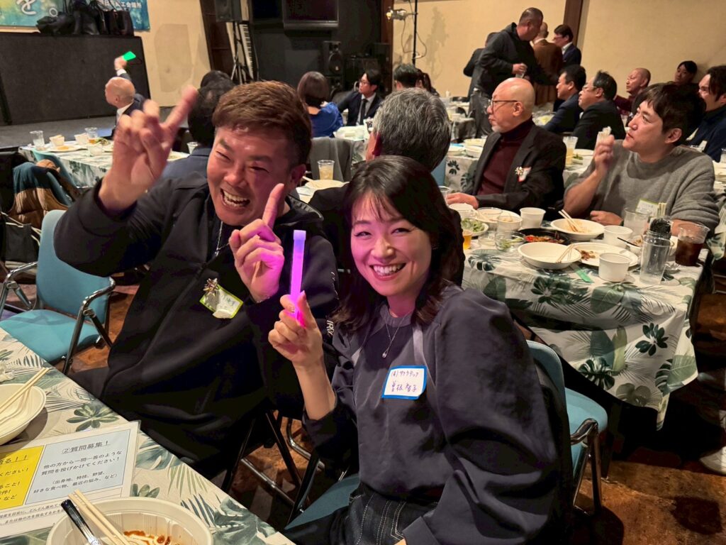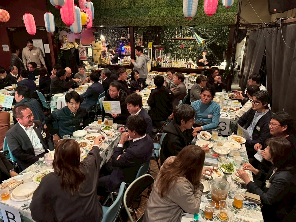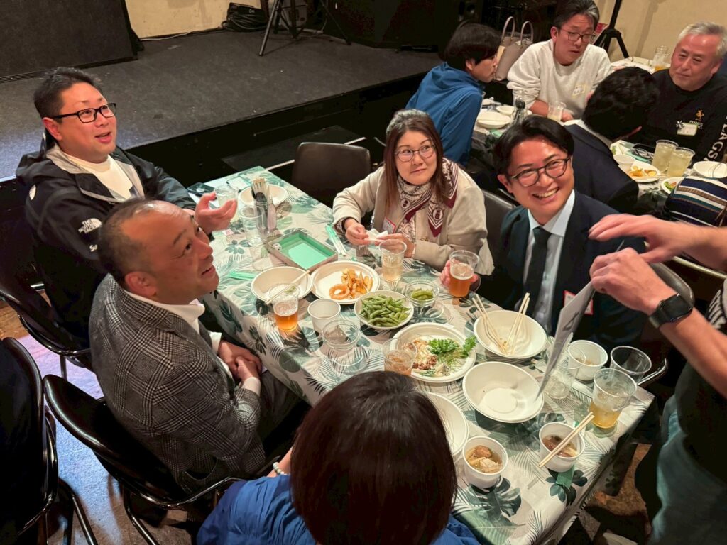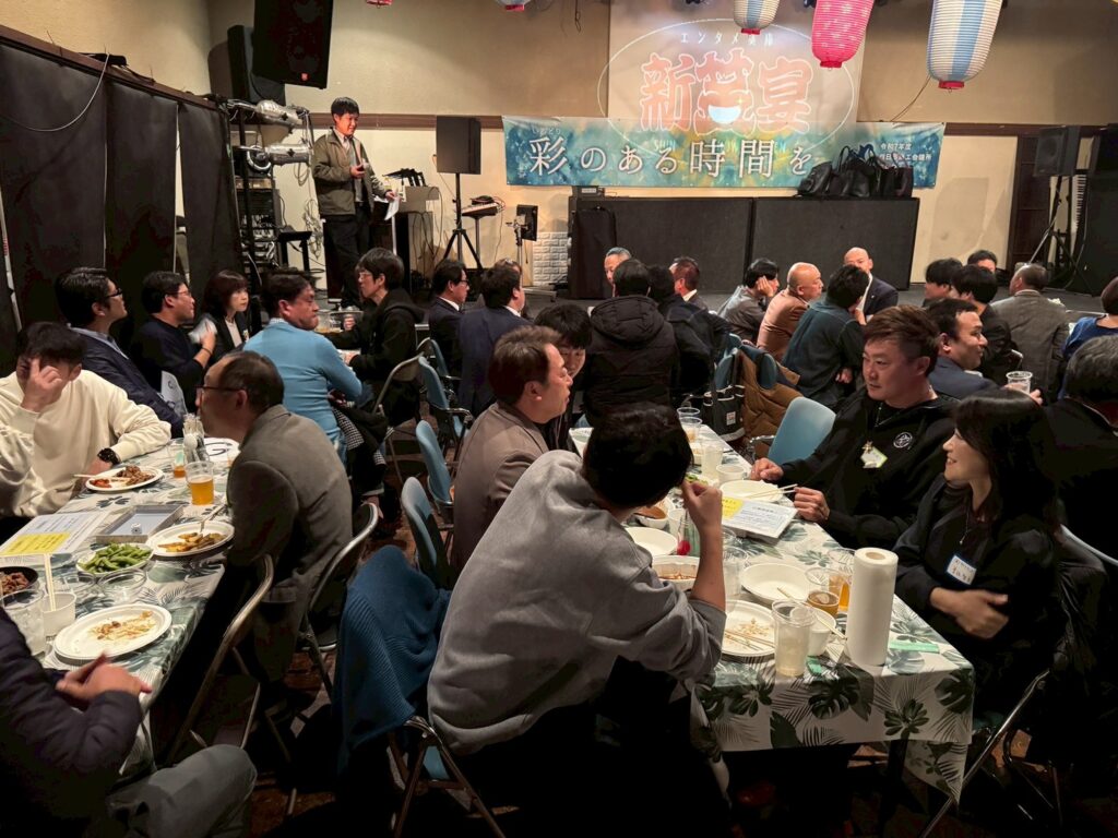 今年度スローガン「彩りある時間を。」のもと、「絆を紡ぐ交流会~ご縁のネットワークを深めよう~」を開催し、OBの先輩方を含む総勢81名の皆様にご参加いただきました。世代を越えた交流が生まれ、会場は終始和やかな雰囲気に包まれました。サイコロトークやものまねショー、マツケンサンバなど全員参加型の演出により、自然な会話と一体感が生まれ、参加者同士の距離が縮まる有意義な交流の場となりました。