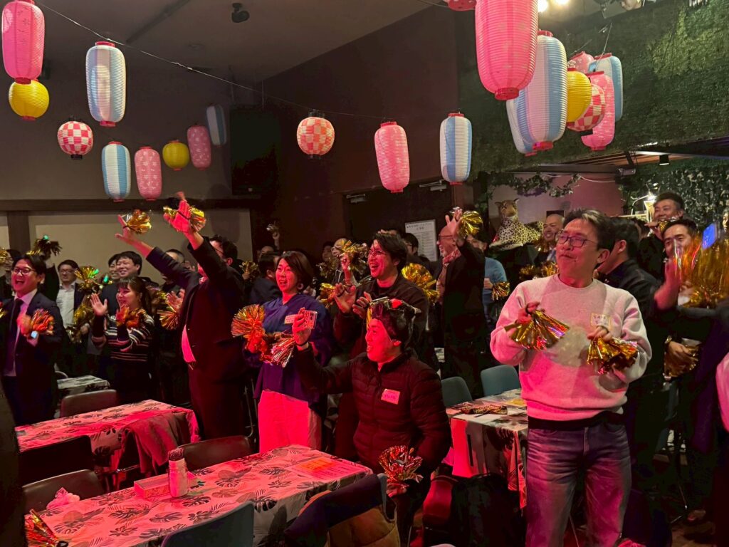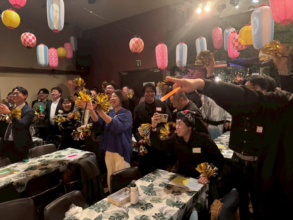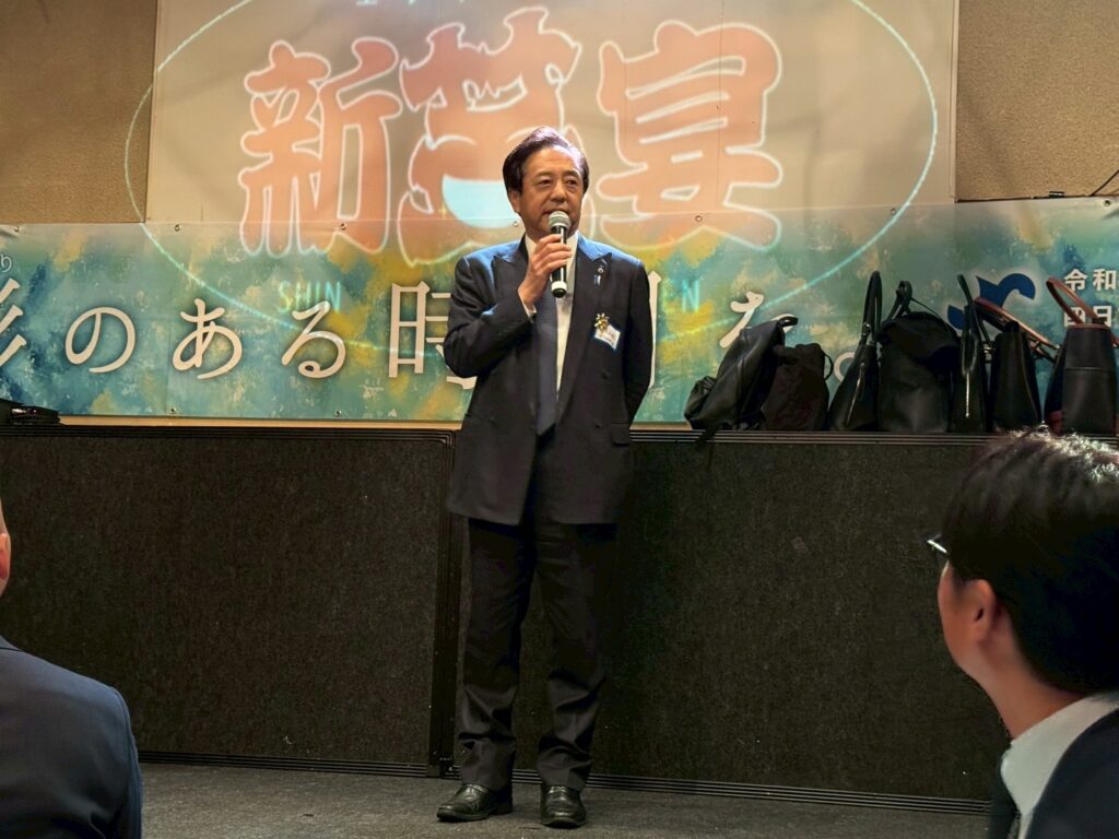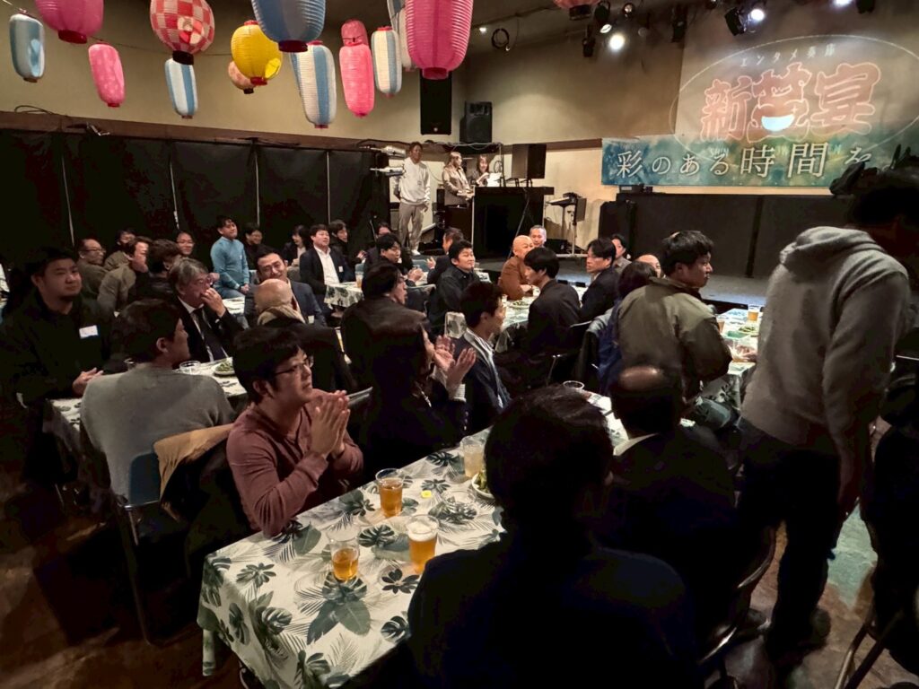 今年度スローガン「彩りある時間を。」のもと、「絆を紡ぐ交流会~ご縁のネットワークを深めよう~」を開催し、OBの先輩方を含む総勢81名の皆様にご参加いただきました。世代を越えた交流が生まれ、会場は終始和やかな雰囲気に包まれました。サイコロトークやものまねショー、マツケンサンバなど全員参加型の演出により、自然な会話と一体感が生まれ、参加者同士の距離が縮まる有意義な交流の場となりました。